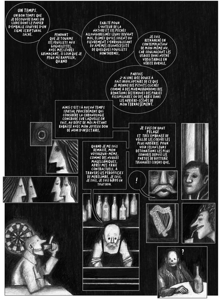 – les affres de la traduction : « I have just been reading in a book ». Longtemps j’ai cherché dans le texte ce que le lecteur avait bien pu lire dans ce livre. J’ai rien trouvé, grammaticalement ! Je conclus qu’il s’agit d’un effet de bégaiement (comme souvent dans FW).En fait, ce sont les lignes précédentes qui ont été lues dans le livre…- 356.16-358.16 (création page 21): le texte se réfère à FGW lui-même pour une bonne part. J’élimine cette partie pour ne conserver que la lecture aux toilettes…